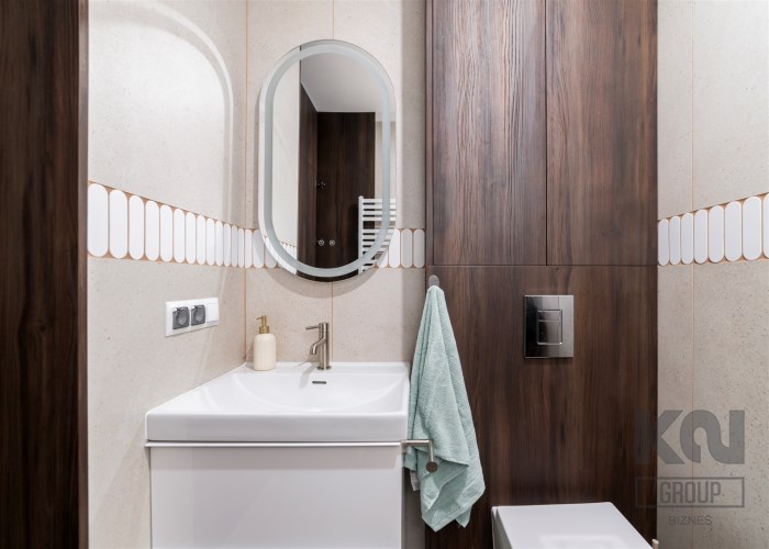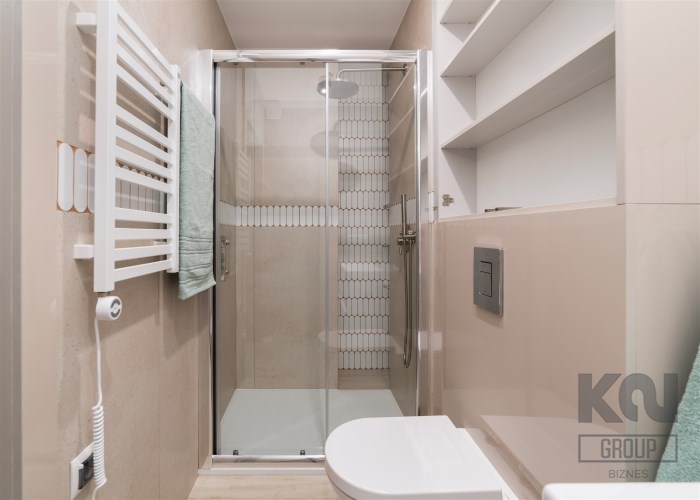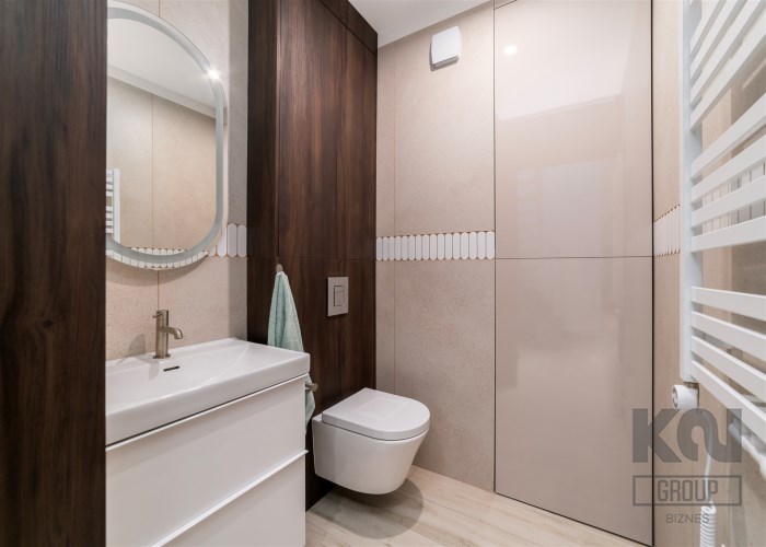 Wyposażenie łazienki WC, umywalka, natrysk, lustro, kabina prysznicowa