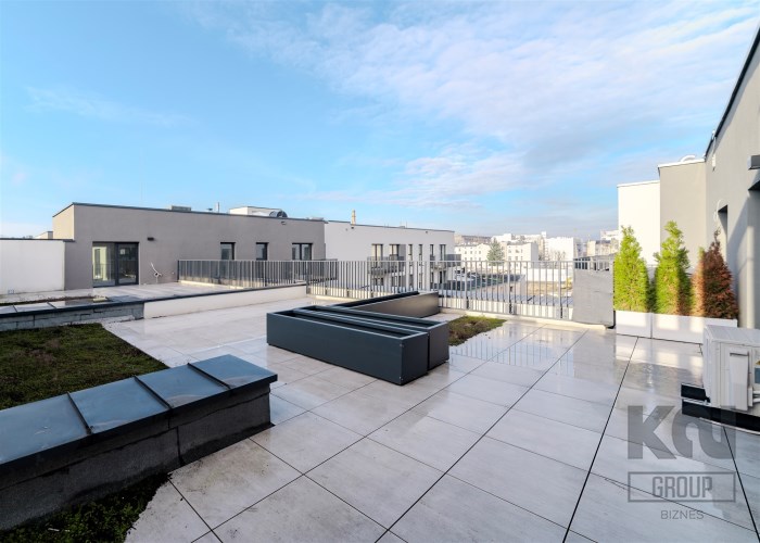 - taras o powierzchni 50m2 (ekspozycja zachodnia), który w przyszłym roku zostanie całkowicie zagospodarowany (ogrodzenie, tarasola z oświetleniem, meble ogrodowe, rośliny);