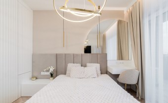 - klimatyzowana główna sypialnia z dużym łóżkiem, toaletką, TV LED 55" oraz pojemną, zabudowaną szafą;