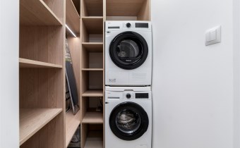 - pomieszczenie gospodarcze wyposażone w zabudowę meblową, pralkę i suszarkę;