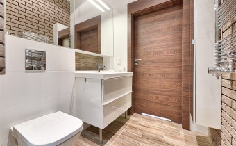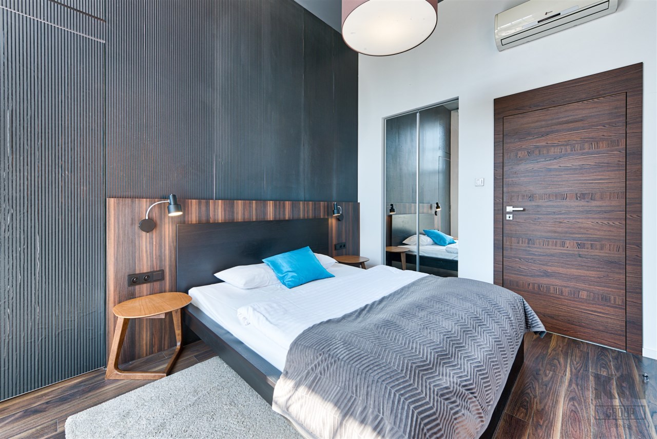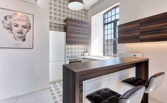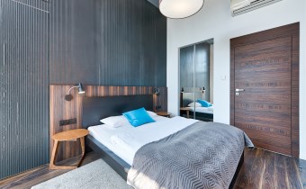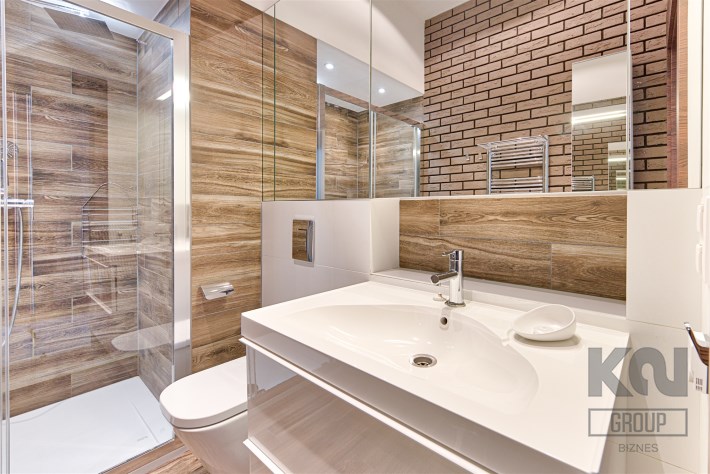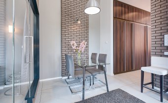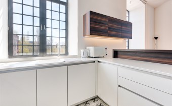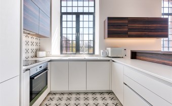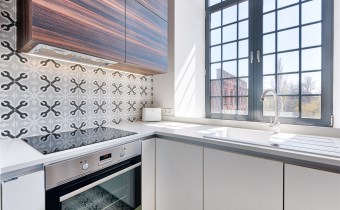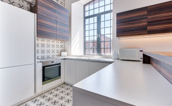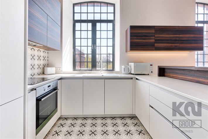 - Kompletnie wyposażony aneks kuchenny (płyta grzewcza, piekarnik, okap, zmywarka, lodówka z zamrażarką);