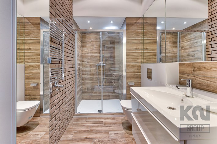 - Łazienkę wyposażoną w kabinę prysznicową oraz pralkę;