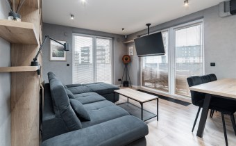 - klimatyzowany salon z wypoczynkiem, częścią jadalną oraz z wyjściem na duży balkon;