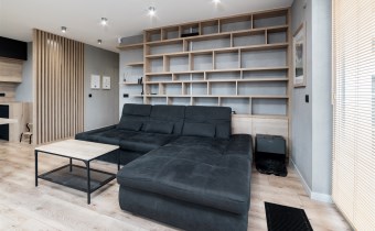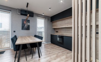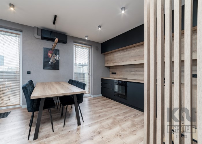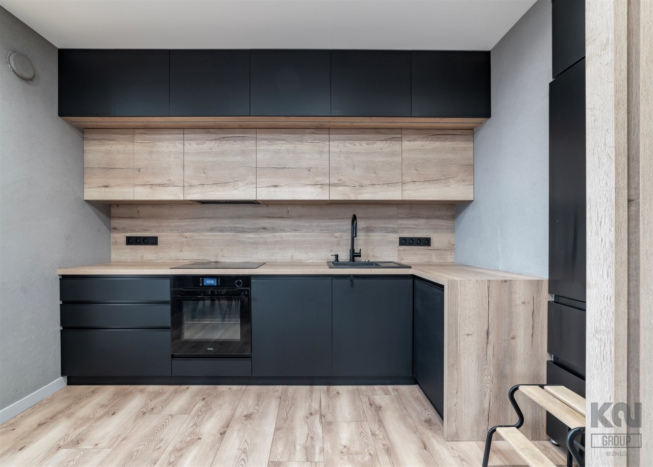 - funkcjonalny aneks kuchenny w pełni wyposażony w zmywarkę, lodówko-zamrażarkę, piekarnik, płytę indukcyjną z okapem;