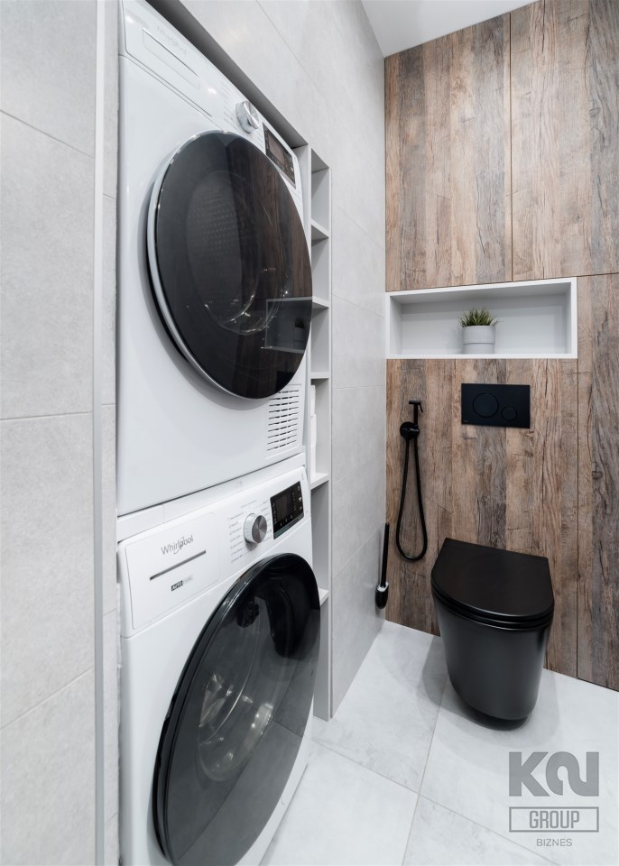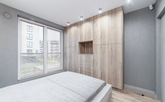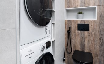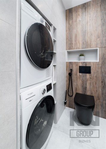 - przestronną sypialnię z podwójnym łóżkiem z szafą w zabudowie z osobnym WC, z pralką i suszarką;