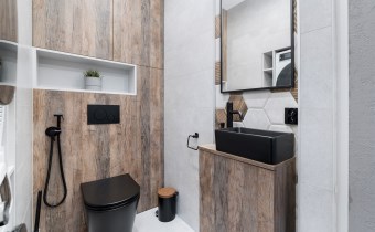 - nowoczesną łazienkę wyposażoną w kabinę prysznicową,