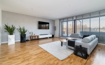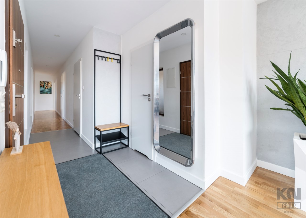 Mamy przyjemność zaprezentować Państwu nowoczesny, pięknie urządzony apartament 4-pokojowy o powierzchni 105,77 m2 z dwoma tarasami usytuowany na ostatnim, drugim piętrze w kameralnym, 10-mieszkaniowym budynku w prestiżowej lokalizacji Marysin-Rogi przy ul. Klimatycznej 34 - to jedna z nielicznych części Łodzi, gdzie rano słychać ptaki, a nie tramwaje, mimo że do centrum (Plac Wolności/Manufaktura) jedzie się stąd zaledwie 12-15 minut autem.