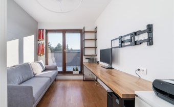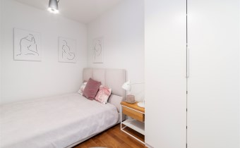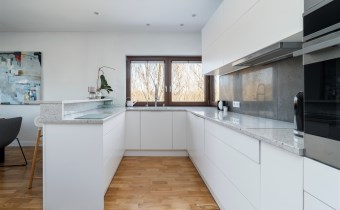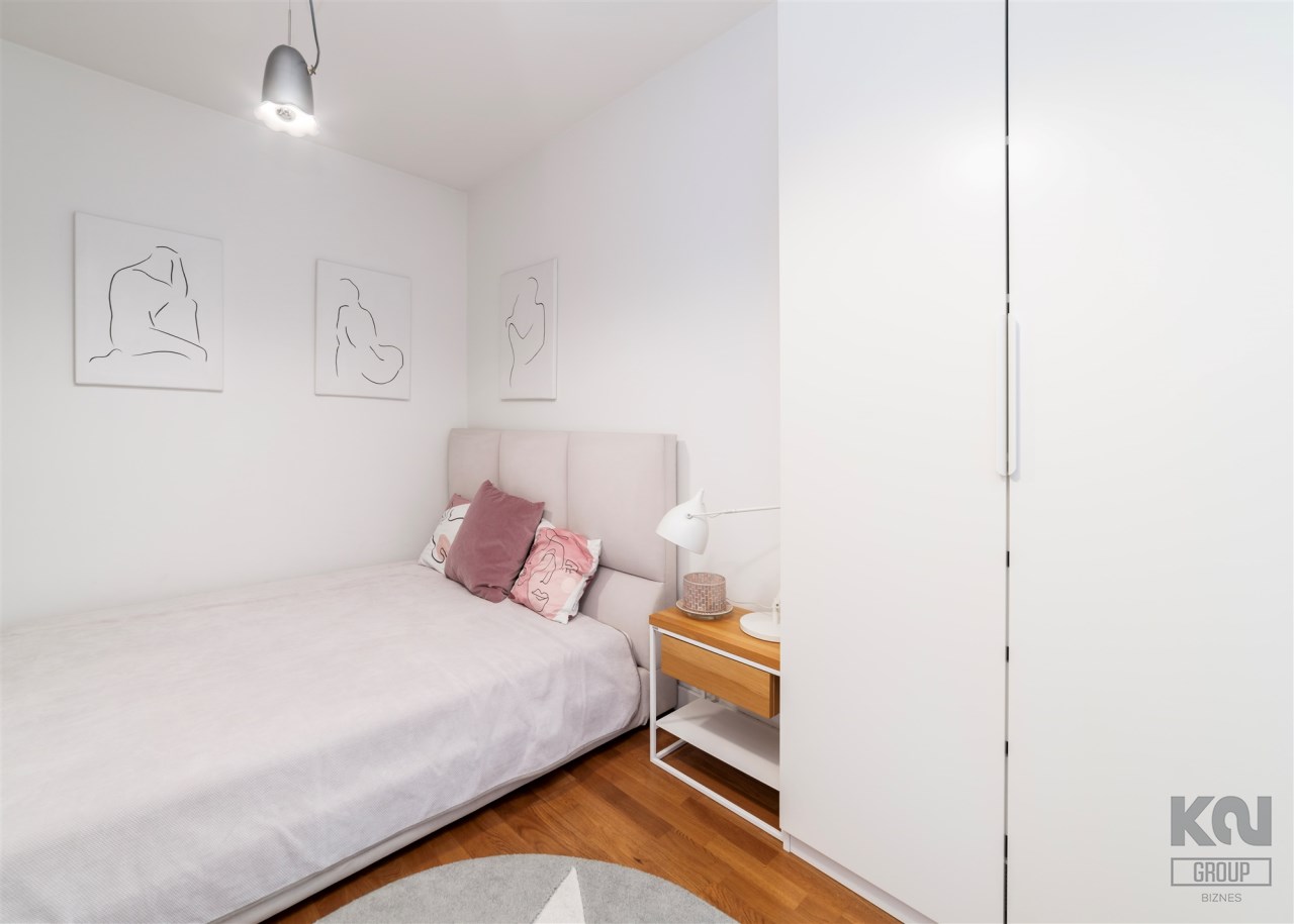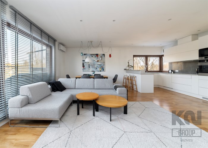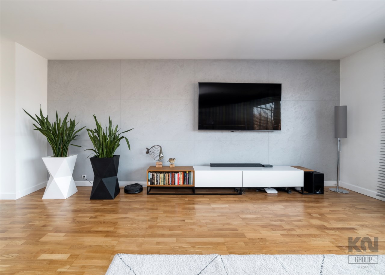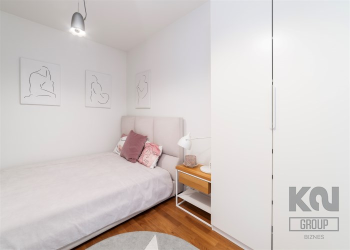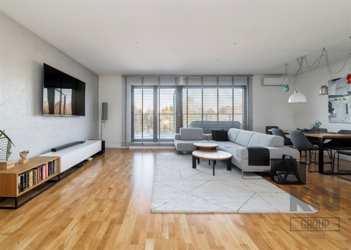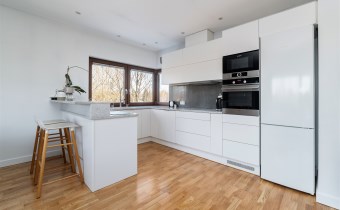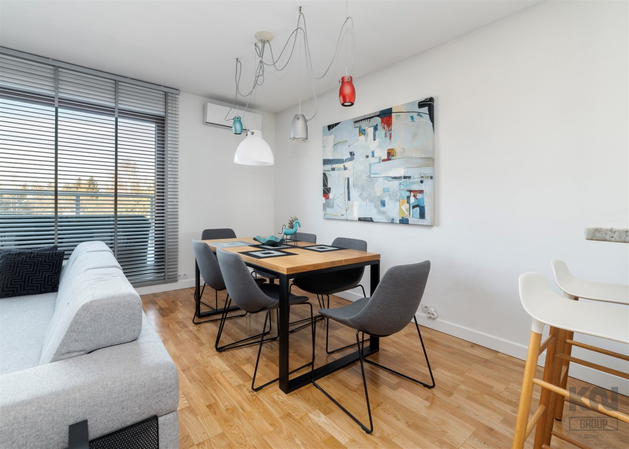 - kompletnie wyposażony aneks kuchenny (płyta indukcyjna, okap, piekarnik, mikrofala, zmywarka, lodówko-zamrażarka);