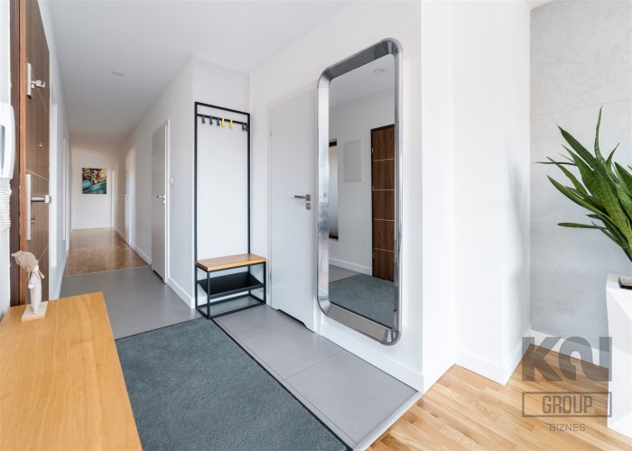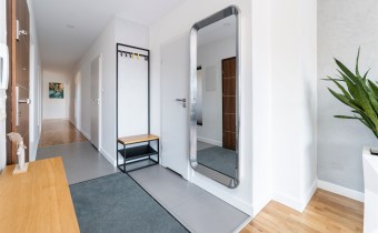 - korytarz z wieszakami i zabudowaną szafą (jedyne mieszkanie na piętrze)