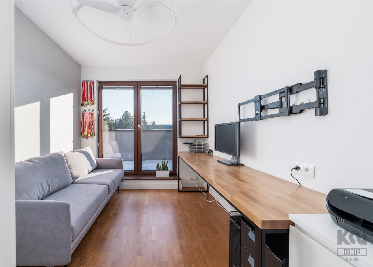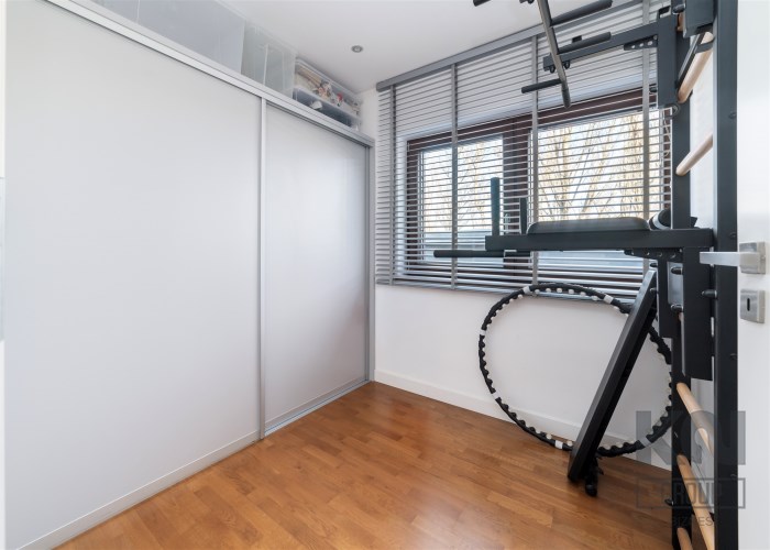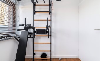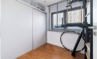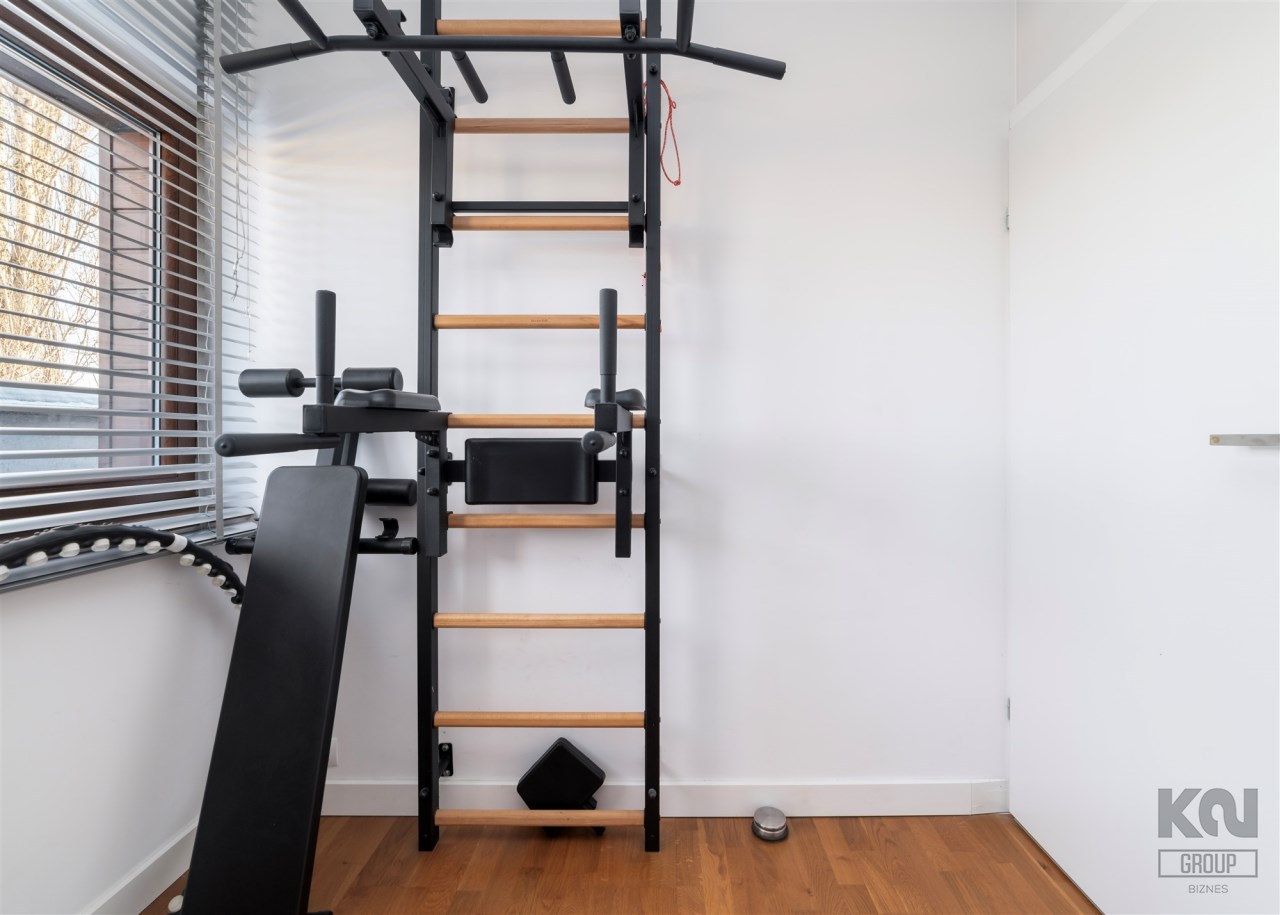 - pokój pełniący obecnie rolę siłowni (możliwość adaptacji na biuro/sypialnię) z zabudowaną szafą;