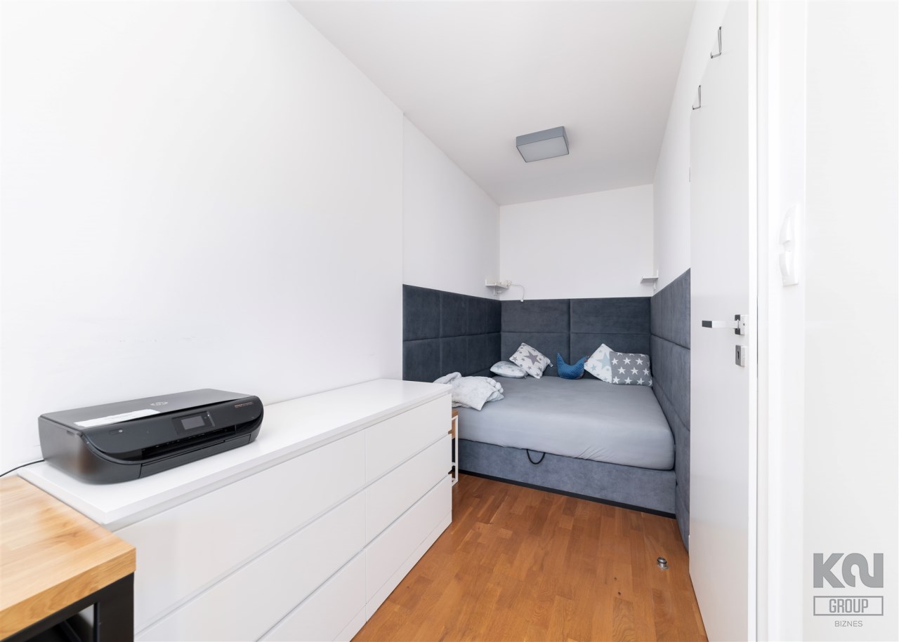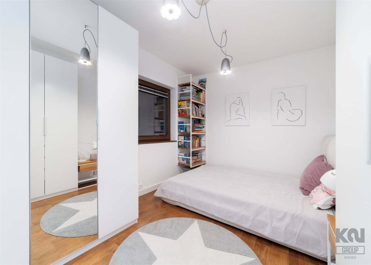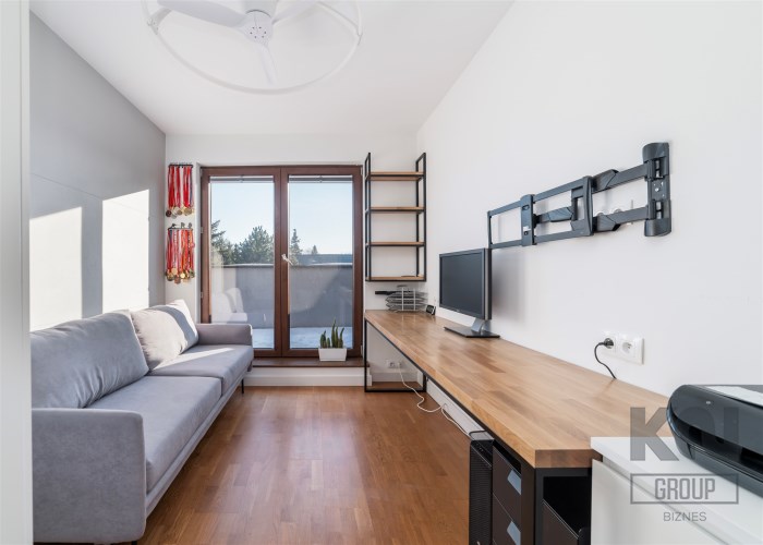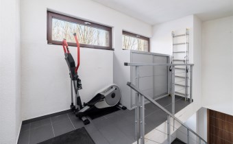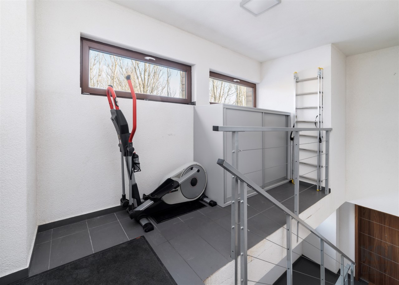 - pokój pełniący obecnie rolę siłowni (możliwość adaptacji na biuro/sypialnię) z zabudowaną szafą;
