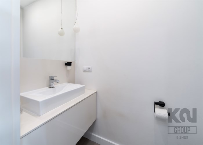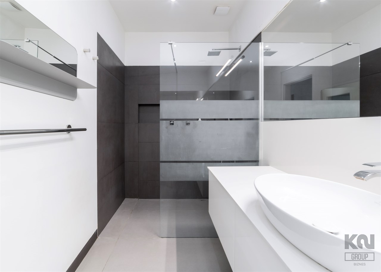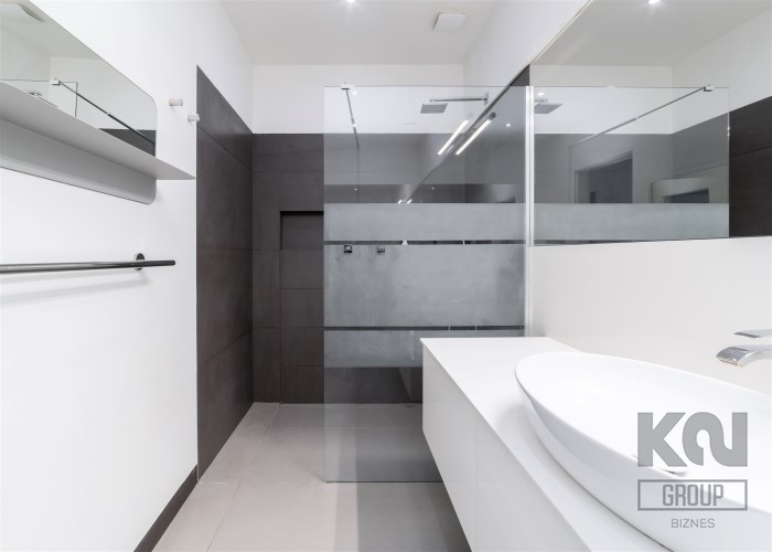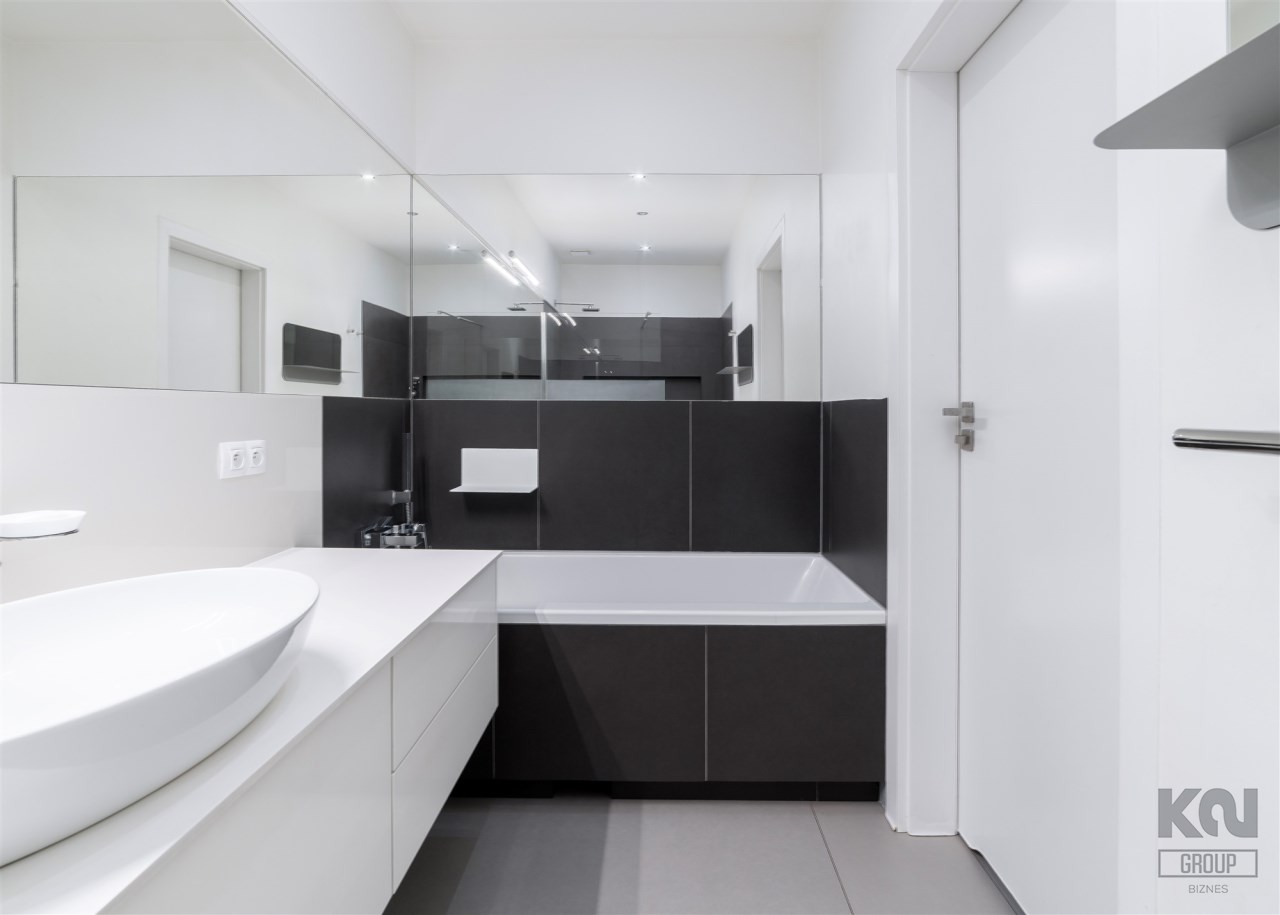 - łazienkę wyposażoną w wannę, kabinę prysznicową i umywalkę;