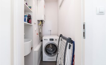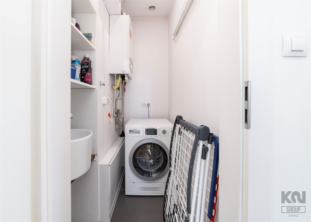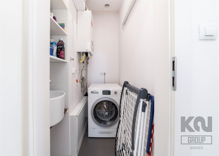 - kotłownię z dwufunkcyjnym piecem gazowym, umywalką oraz pralką;