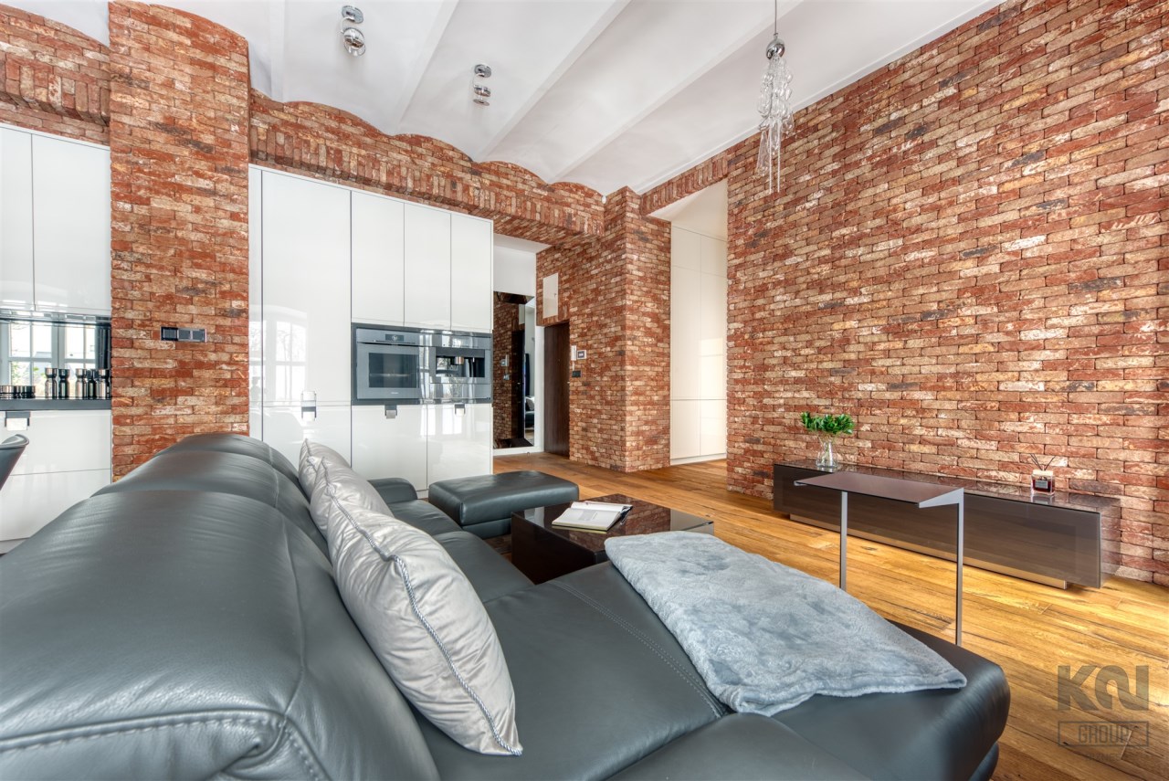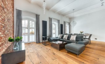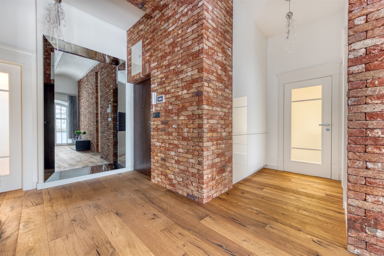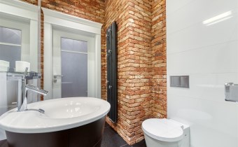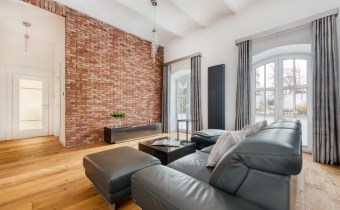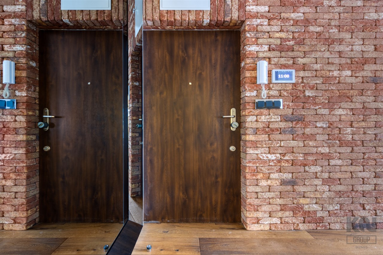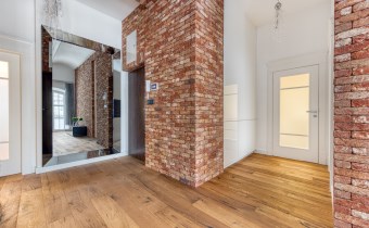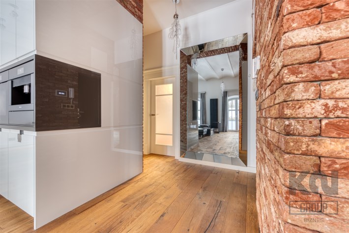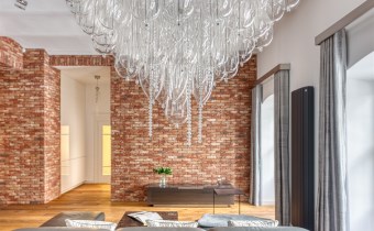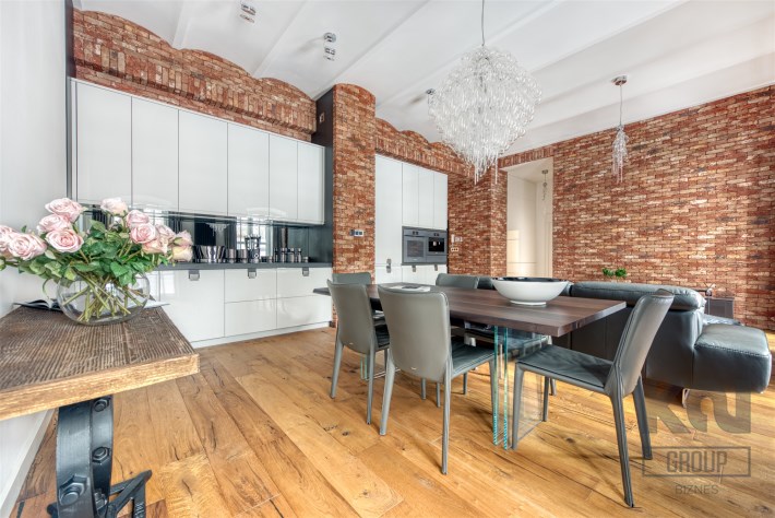- cały apartament wykończony jest cegłówką sprowadzoną z Włoch, podkreślającą loftowo-industrialny charakter wnętrza;