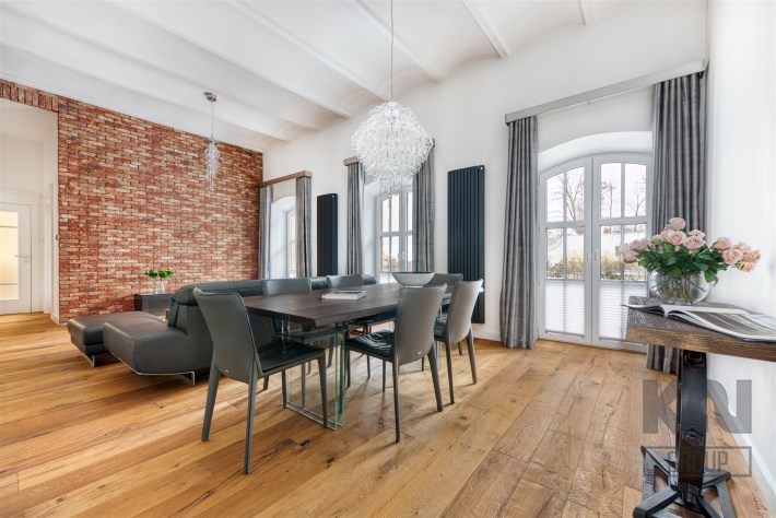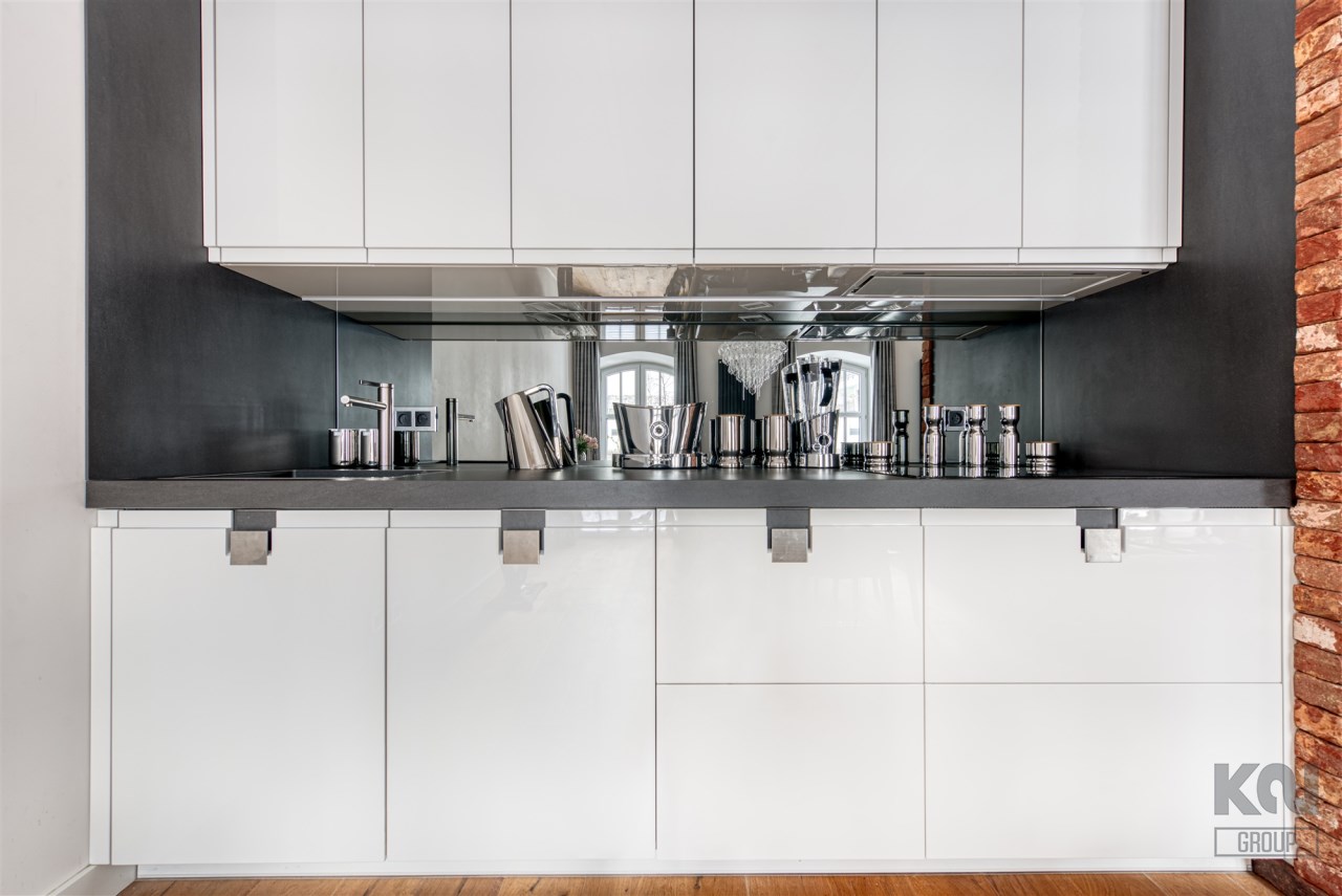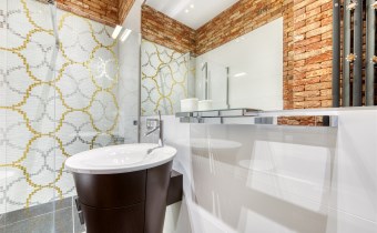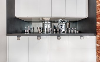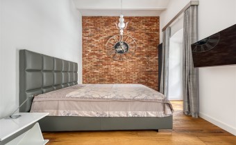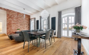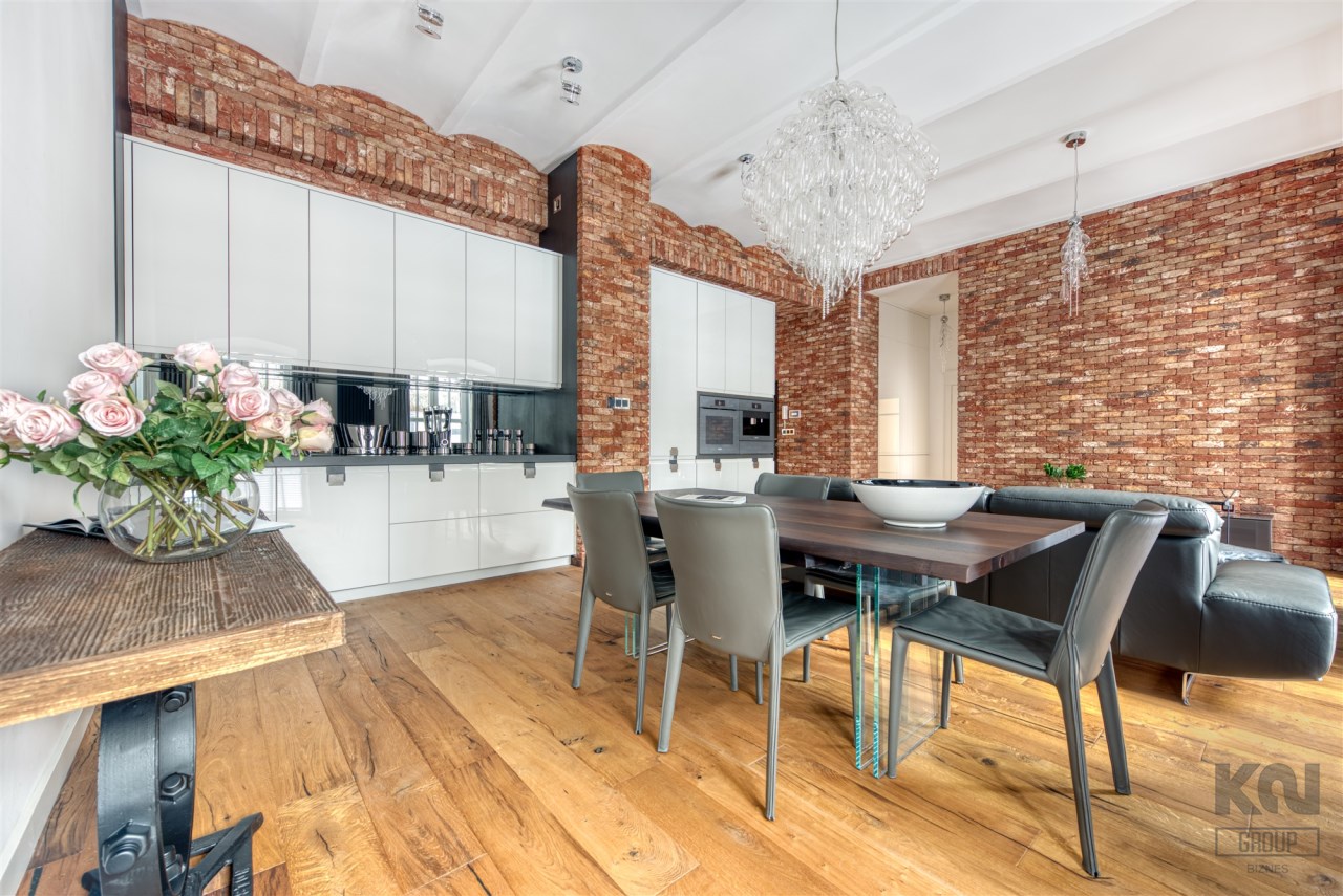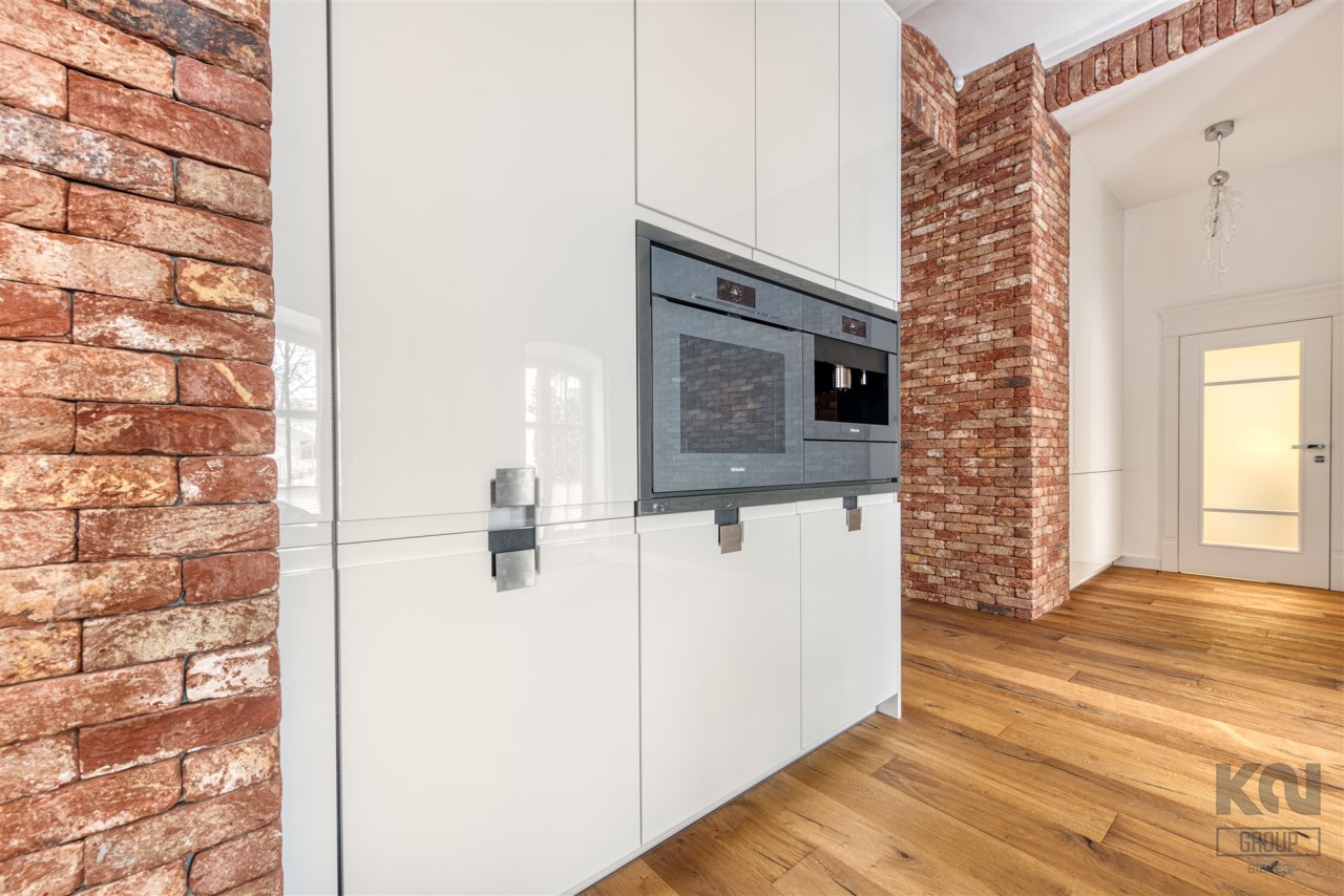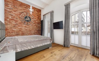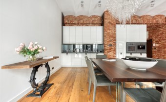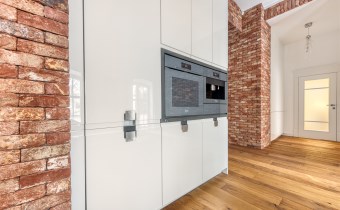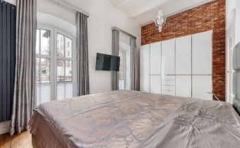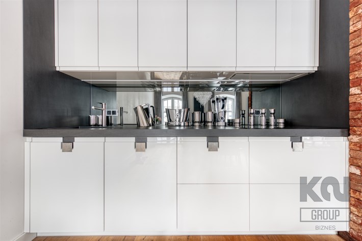 - cały apartament wykończony jest cegłówką sprowadzoną z Włoch, podkreślającą loftowo-industrialny charakter wnętrza;